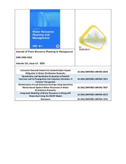 ISSN:0733-9496|Publisher:American Society of Civil Engineers (ASCE)|Type:Journal|Language:English|Periority:monthly|Category:Engineering|Category[fa]:مهندسی|Subjects:Civil |Structural Engineering|Geography|Planning|Development|Management|Monitoring|Policy and Law |Water Science|Technology|Subjects[fa]:عمران | سازه|جغرافیا|برنامه ریزی|توسعه|مدیریت|نظارت|سیاست و قانون |علوم آب|فناوری|