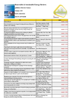 ISSN:1364-0321|Publisher:Elsevier.|Type:Magazine|Language:English|Periority:Monthly|Category:Energy|Category[fa]:انرژی |Subjects:Renewable Energy, Sustainability and the Environment|Subjects[fa]:انرژی های تجدیدپذیر، پایداری و محیط زیست|Disc:Renewable and Sustainable Energy Reviews is a peer-reviewed scientific journal covering research on sustainable energy. It is published in 12 issues per year by Elsevier and the editor-in-chief is Aoife M. Foley. According to the Journal Citation Reports, the journal has a 2021 impact factor of 16.799.|